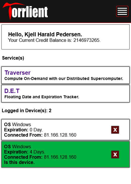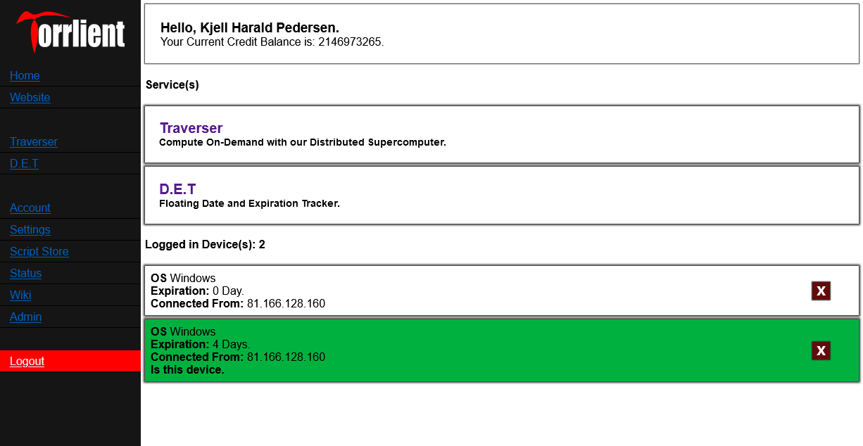 Torrlient is a private norwegian company (ENK). Operator and developer of Norways largest Private Distributed Supercomputer - Traverser.